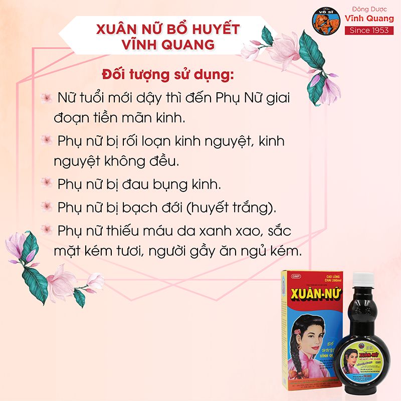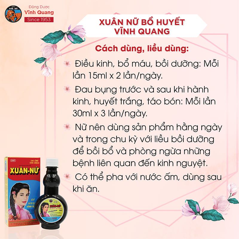Combo 6 chai Xuân Nữ Bổ Huyết VĨNH QUANG 280ml - Điều hòa kinh nguyệt, đau bụng kinh, liệu trình 1 tháng cho Phụ Nữ